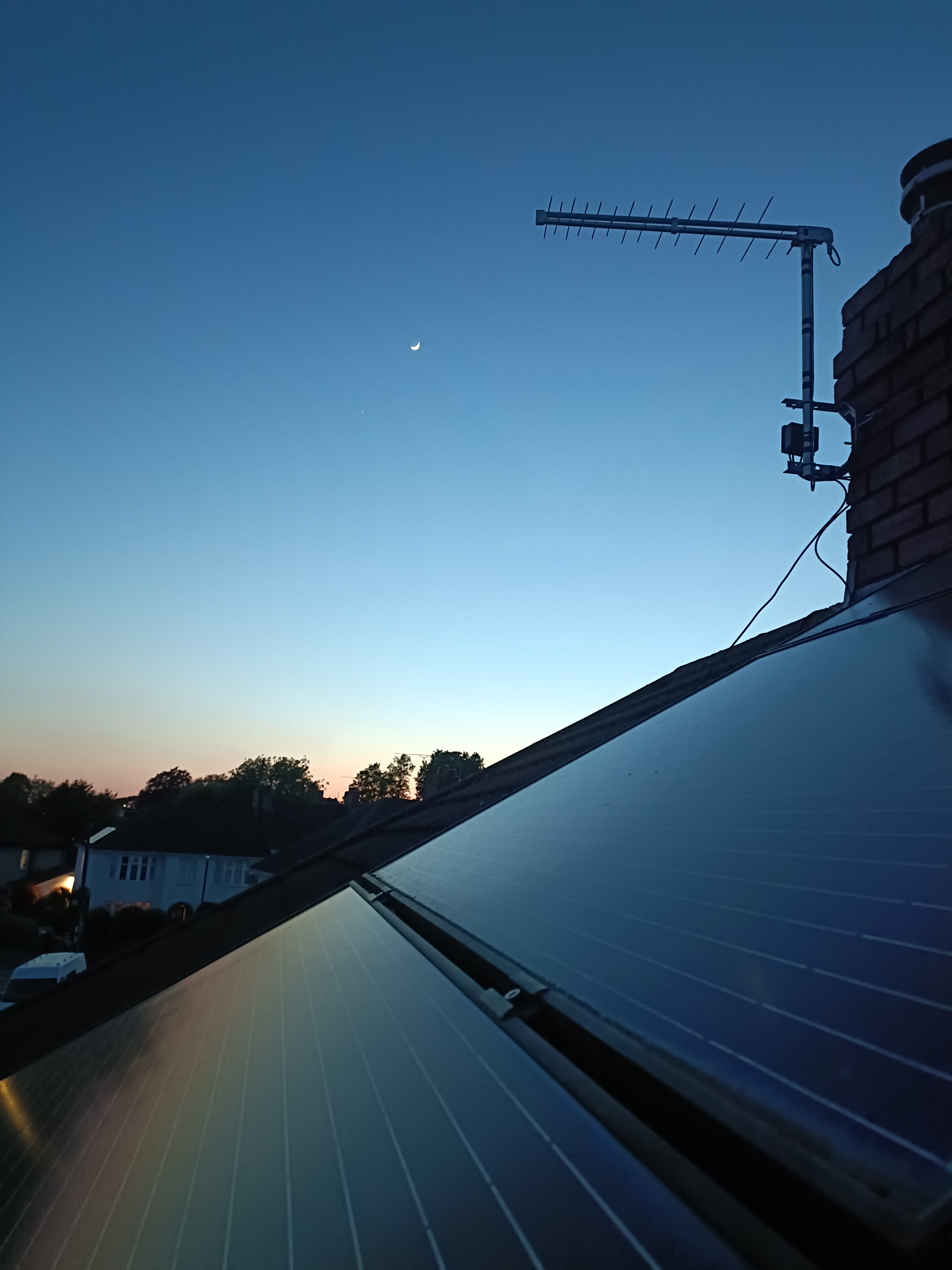 The sky is never quite the same twice, even when it appears to be just blue. There are mornings when the moon hangs on longer than expected, reflected softly in the glass of solar panels on our roof. Moments where clouds form patterns and textures that feel deliberate, as if someone has been practising brushstrokes. Evenings when a hot air balloon drifts across a deepening sky, turning sunset into something briefly cinematic. In winter, bare trees stand silhouetted against pale or inky skies, their branches etched sharply in black, suddenly noticeable once you lift your gaze. Days when a hillside sits under a blue so bright it feels almost unreal.